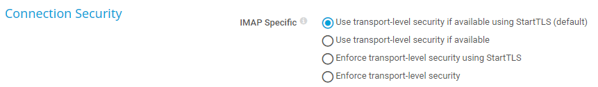 • Use transport-level security if available using StartTLS: Try to connect to the server via a Secure Sockets Layer (SSL)/Transport Layer Security (TLS) secured connection and StartTLS. If the server does not support this, the sensor tries to connect without connection security.