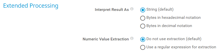• Do not use extraction (default): Do not extract a float value. Use the result as a string value.