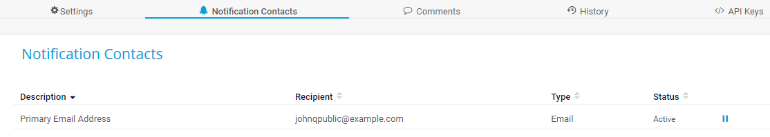 Notification Contacts Tab
