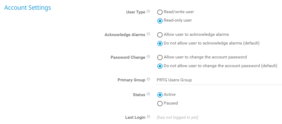 This setting is not available for the PRTG System Administrator user account.