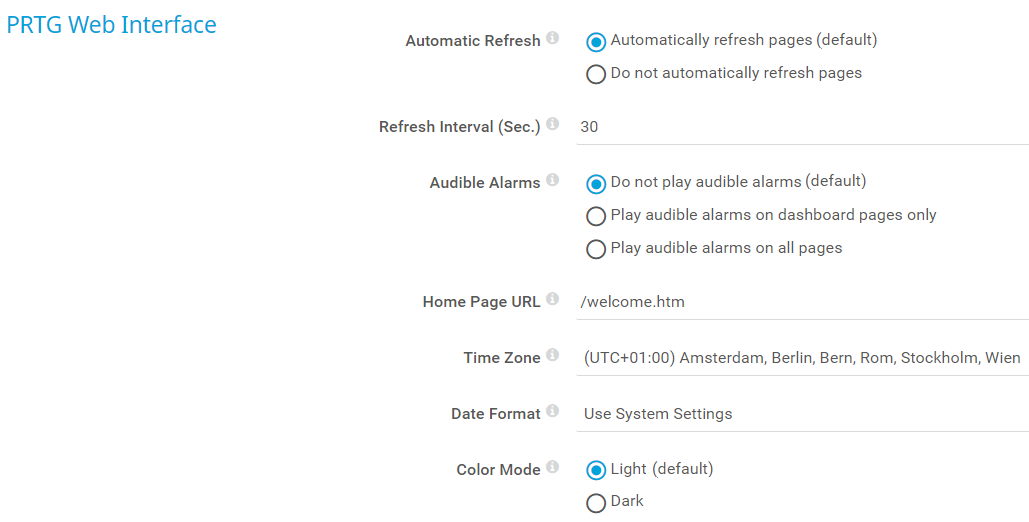 Automatically refresh pages (default): PRTG automatically refreshes single page elements on web pages in the PRTG web interface.
